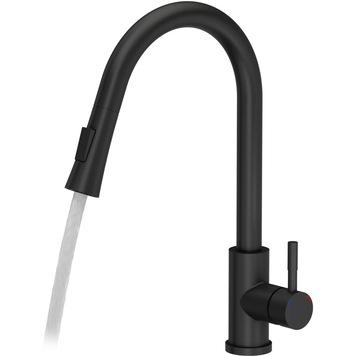 - mitigeur en acier noir d'une hauteur de 42,5 cm avec douchette extractible et interrupteur pour la fonction douche (mitigeur avec système d'assemblage QFix, c'est-à-dire écrou sans outils supplémentaires)