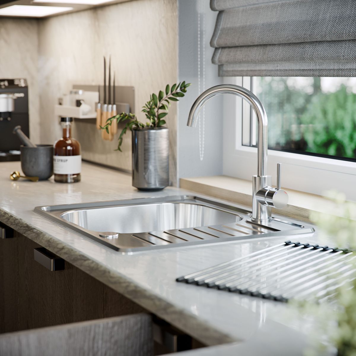 L'évier est en acier inoxydable SteelQ nous accompagne dans la cuisine depuis des années en tant que matériau extrêmement hygiénique et adaptable. L'acier Q utilisé est résistant à la corrosion et sa couleur est stable. L'acier utilisé dans la cuisine est naturellement soumis à un processus de vieillissement, reflétant magnifiquement l'histoire de son utilisation. L'acier inoxydable peut toujours être rajeuni et restauré pour retrouver presque son état d'origine. En outre, il s'agit d'un matériau entièrement écologique - il peut être entièrement recyclé après utilisation.