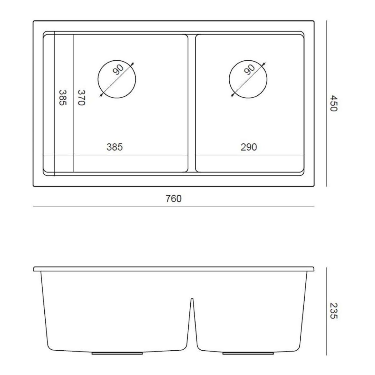 Quadron Logan évier graniteq 76x45 cm noir HQL7645U8_PVDC1_U