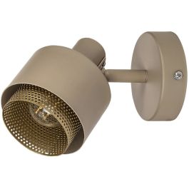 Le spot Fedora, de style contemporain, sera un excellent complément à votre salon ou à votre chambre à coucher. Cette lampe murale entièrement métallique en brun clair et or est fixée au mur à l'aide d'une base décorative ronde. Sa particularité réside dans l'abat-jour intérieur cylindrique perforé en or, qui dépasse de l'abat-jour extérieur brun clair.