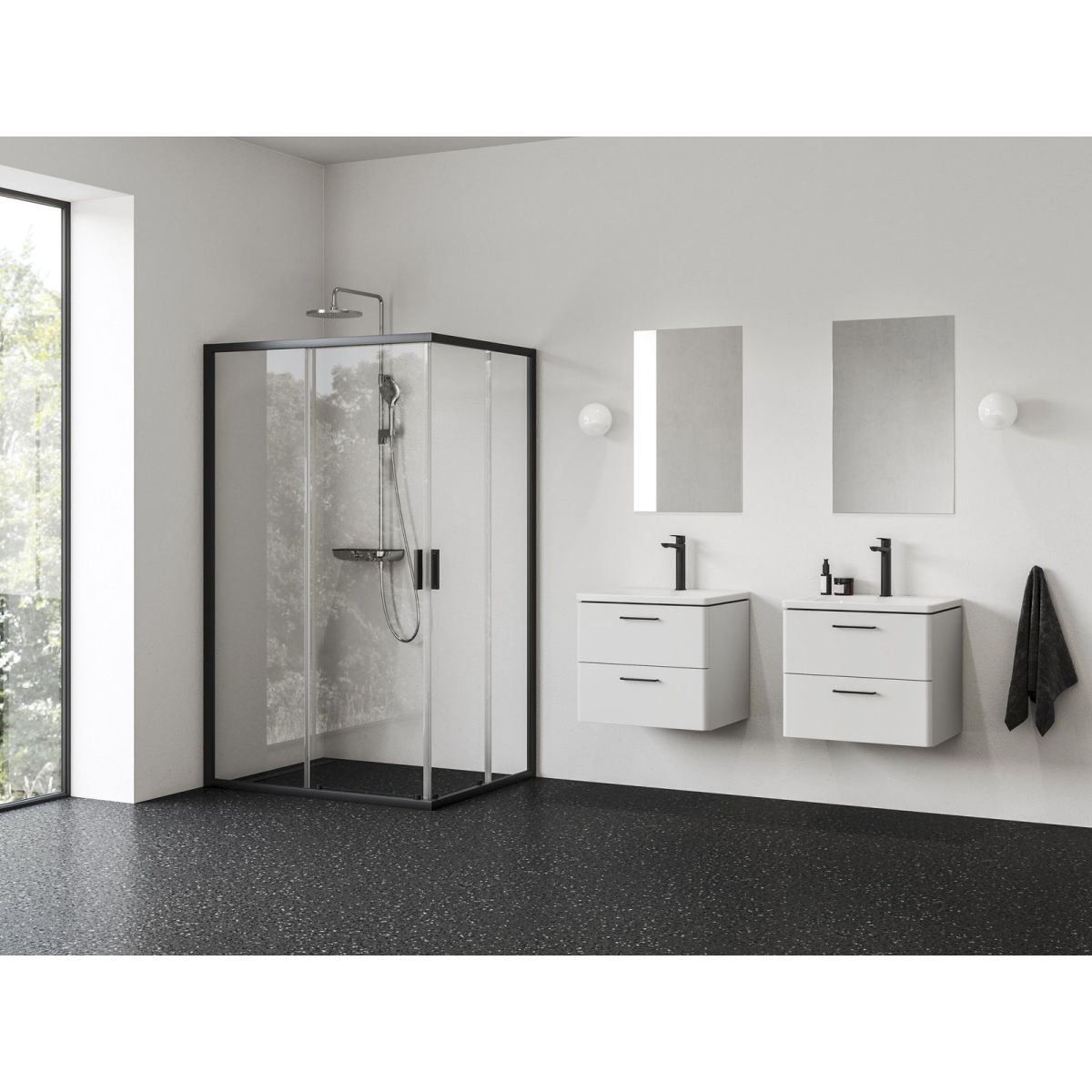 Le produit complet se compose de deux portes de douche. La cabine de douche est installée dans un coin carrelé de la salle de bain sur un receveur de douche Ravak : Angela, Perseus Pro, Perseus Pro Flat, Perseus Pro Chrome, Gigant, Gigant Pro, Gigant Pro Flat, Gigant Pro Chrome ou directement sur le sol avec un écoulement linéaire intégré ou une grille d'écoulement.
