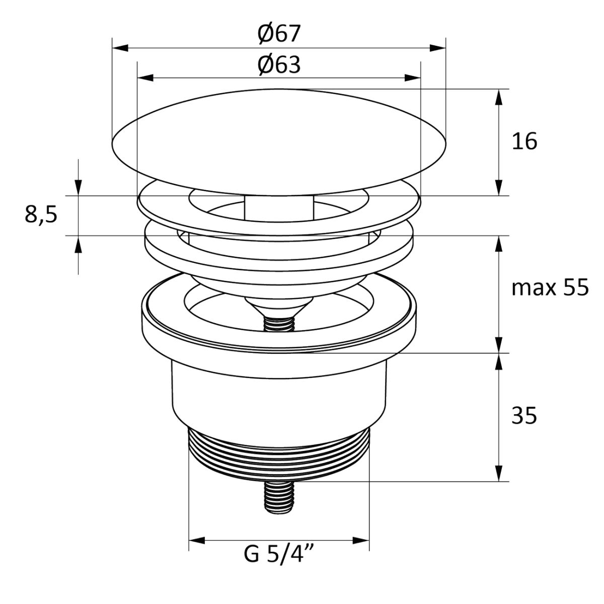- utilisation prévue : pour tous les lavabos sans trop-plein avec un diamètre de sortie de 46 mm et un filetage G 5/4"