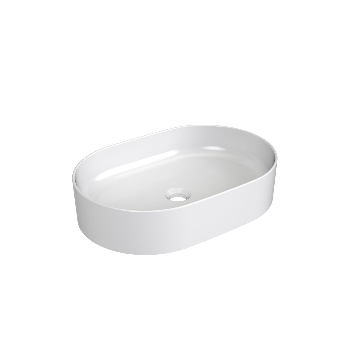 Lavabo Slim en céramique à paroi mince conçu pour être posé sur un comptoir ou dans une armoire, sans trop-plein. Couleur blanche.