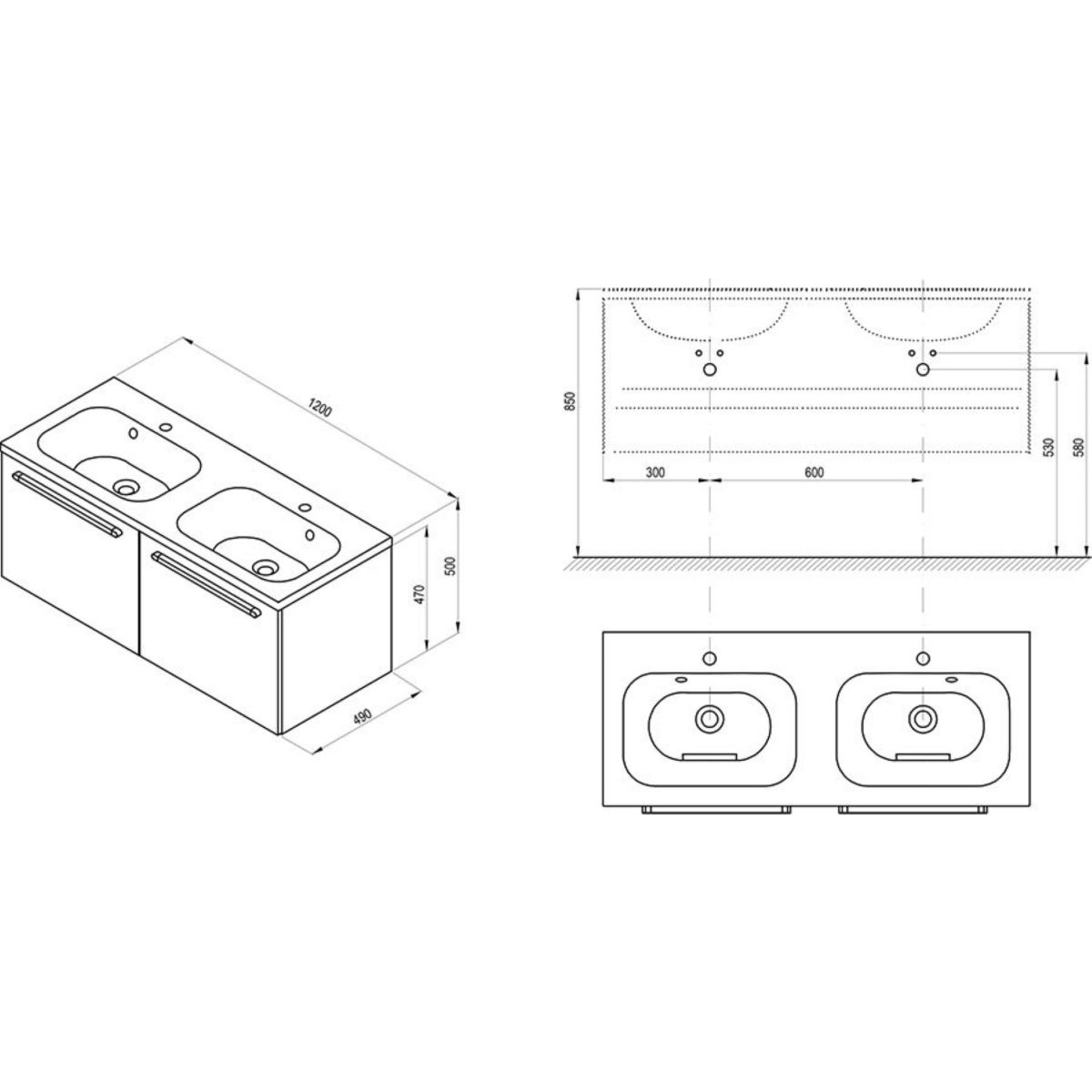 Le meuble double lavabo SD Chrome II 120 avec deux tiroirs hauts et un espace de rangement de 40 cm de haut est conçu pour le double lavabo Chrome Slim 120. La partie droite du meuble est équipée d'un tiroir bas intégré supplémentaire avec une glissière séparée. La partie gauche du meuble se compose uniquement d'un tiroir haut d'une hauteur intérieure de 40 cm. L'armoire est livrée prémontée, avec le kit de montage (vis, charnières, chevilles) et les poignées. L'armoire est montée directement sur le mur.