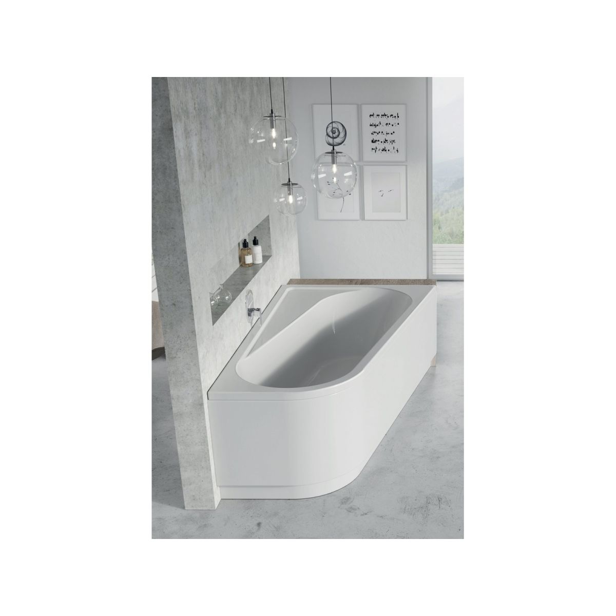 La baignoire d'angle Chrome séduit par son confort et l'ergonomie de sa forme. Grâce à son inclinaison par rapport au mur, elle offre une tablette unique qui peut servir à la fois de rangement et de siège confortable. Variante droite.