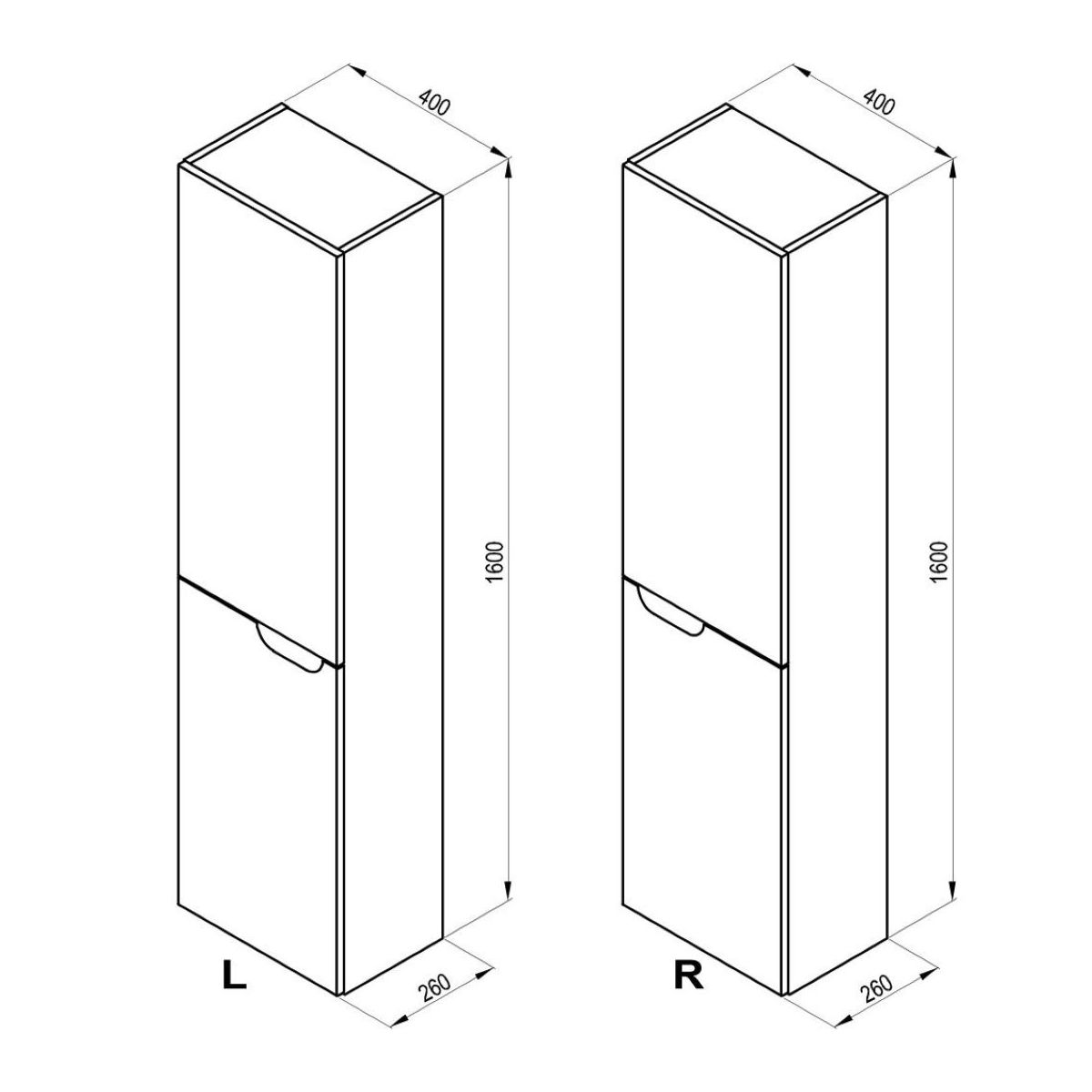 La colonne de salle de bains est équipée de tablettes réglables dans la partie supérieure et inférieure. La version gauche ou droite est déterminée par le côté où se trouvent les charnières. Les charnières de haute qualité garantissent une fermeture lente de la porte. L'armoire est livrée assemblée, y compris le kit de montage (vis, charnières, chevilles). Le meuble est fixé au mur.
