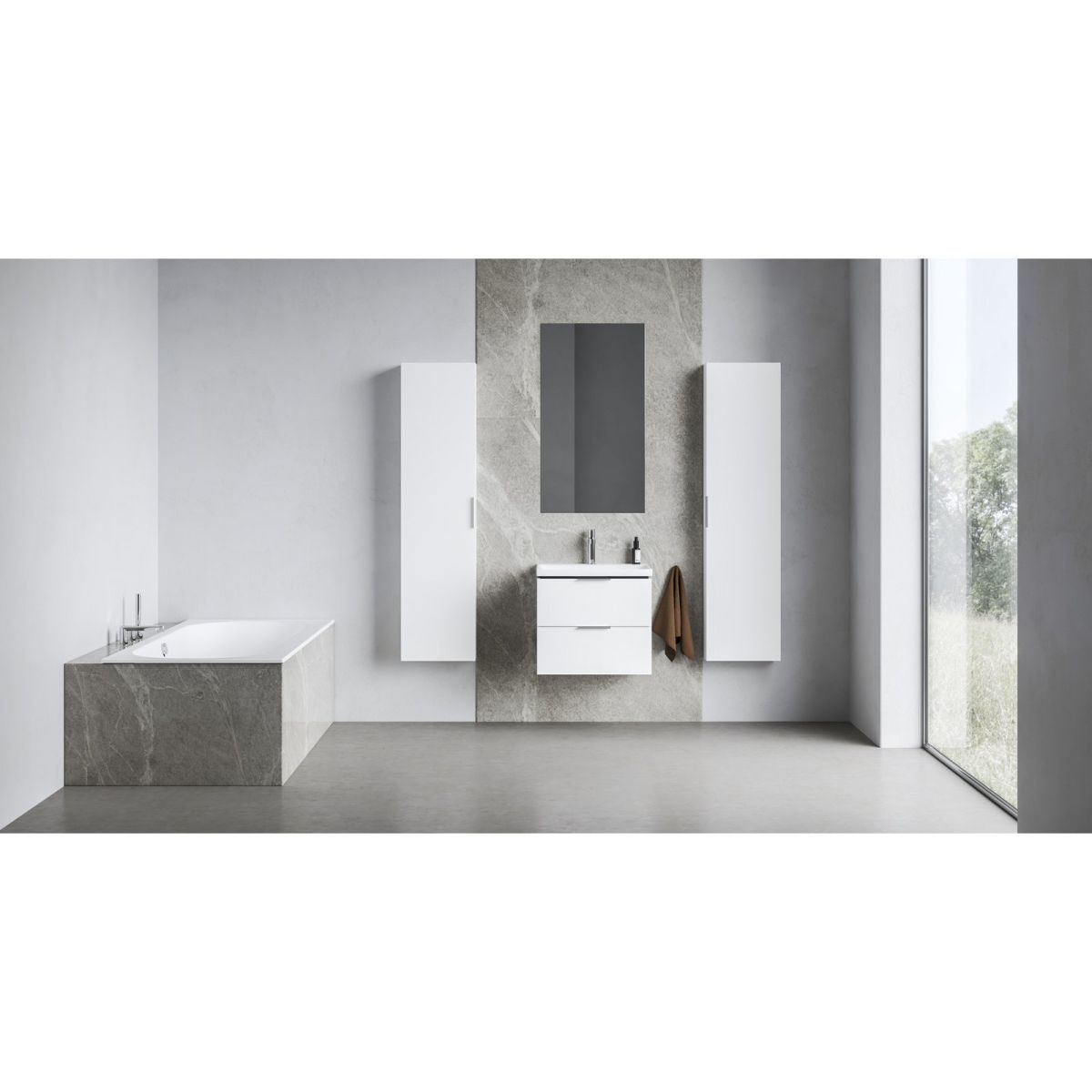 Les armoires Comfort II offrent une solution pour les deux variantes. Ajoutez un porte-serviettes métallique au plan de travail pour avoir tout à portée de main.