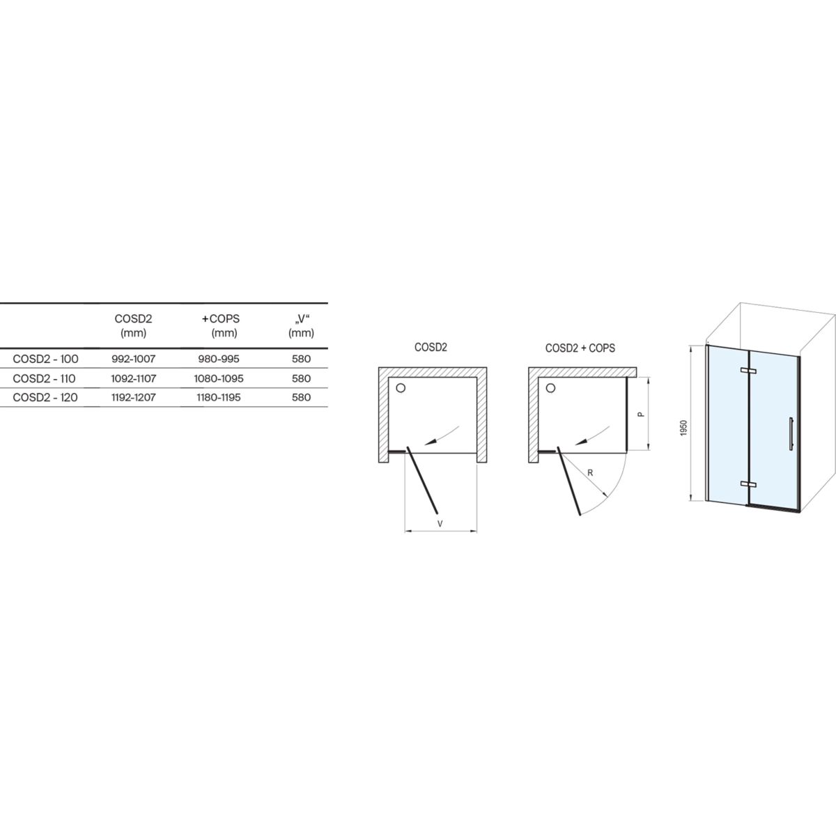 - les portes peuvent être combinées avec une paroi fixe COPS (80,90,100) pour former une cabine de douche, paroi à acheter séparément !