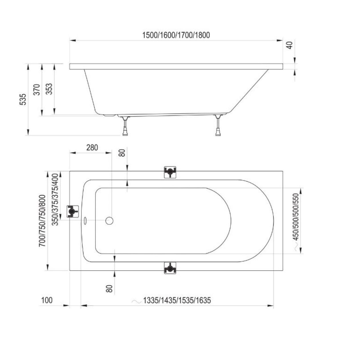 - accessoires à acheter : cadre de baignoire, kit de vidange de baignoire.