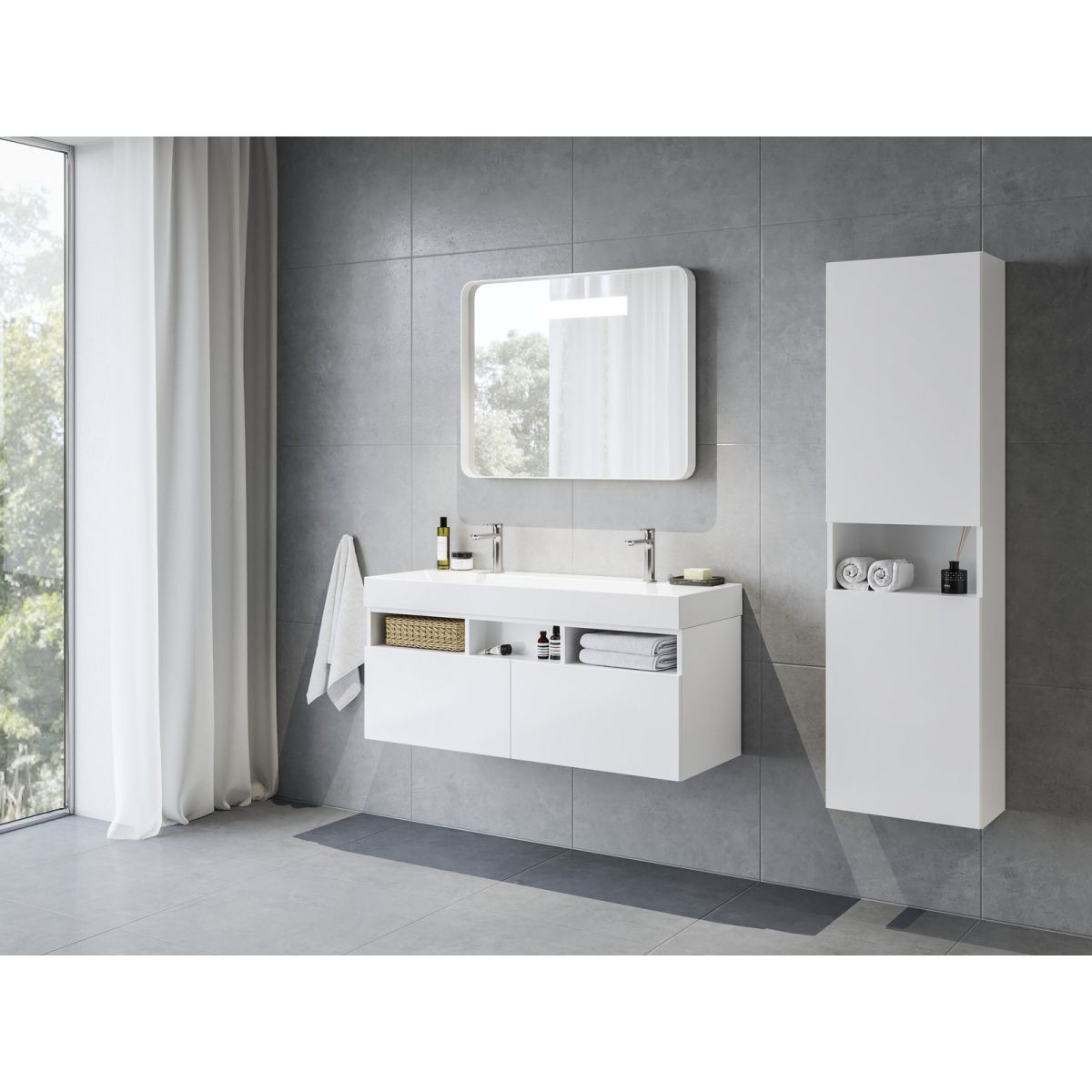 Caisson de salle de bain naturel au design blanc.