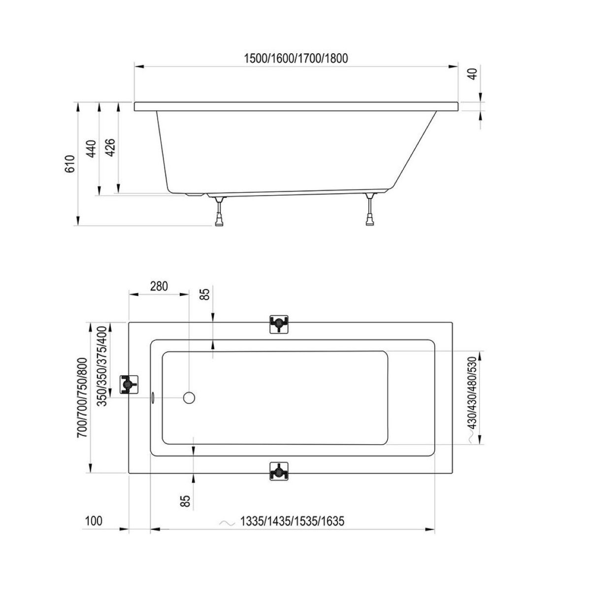 La baignoire peut être complétée par les écrans de baignoire suivants : CVS2, VS2, VS3, VS5, PVS1, NVS1, BVS1, BVS2. Les panneaux avant et latéraux et le siphon peuvent être achetés séparément. La baignoire est renforcée par de la fibre de verre (LA). Le large fond de la baignoire, équipé d'un pare-baignoire, garantit une douche sûre et confortable.