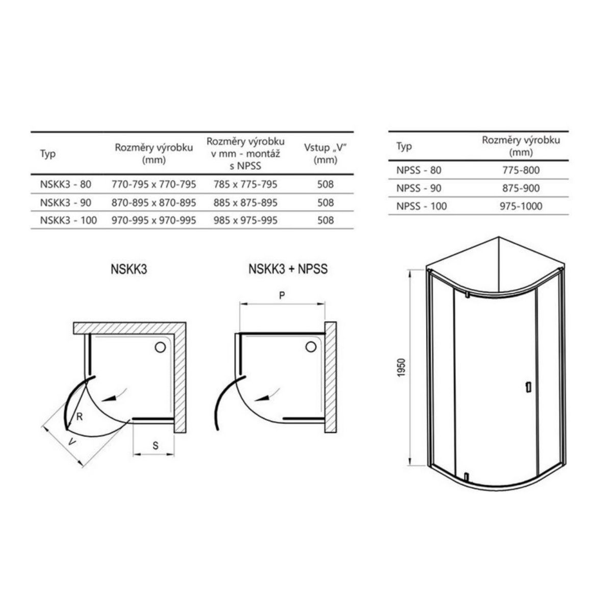Cabine de douche demi-circulaire en trois parties Nexty, finition satinée, avec vitrage transparent et couche protectrice Ravak AntiCalc®. Système d'ouverture : charnière pivotante. Le produit n'existe pas en version droite ou gauche.