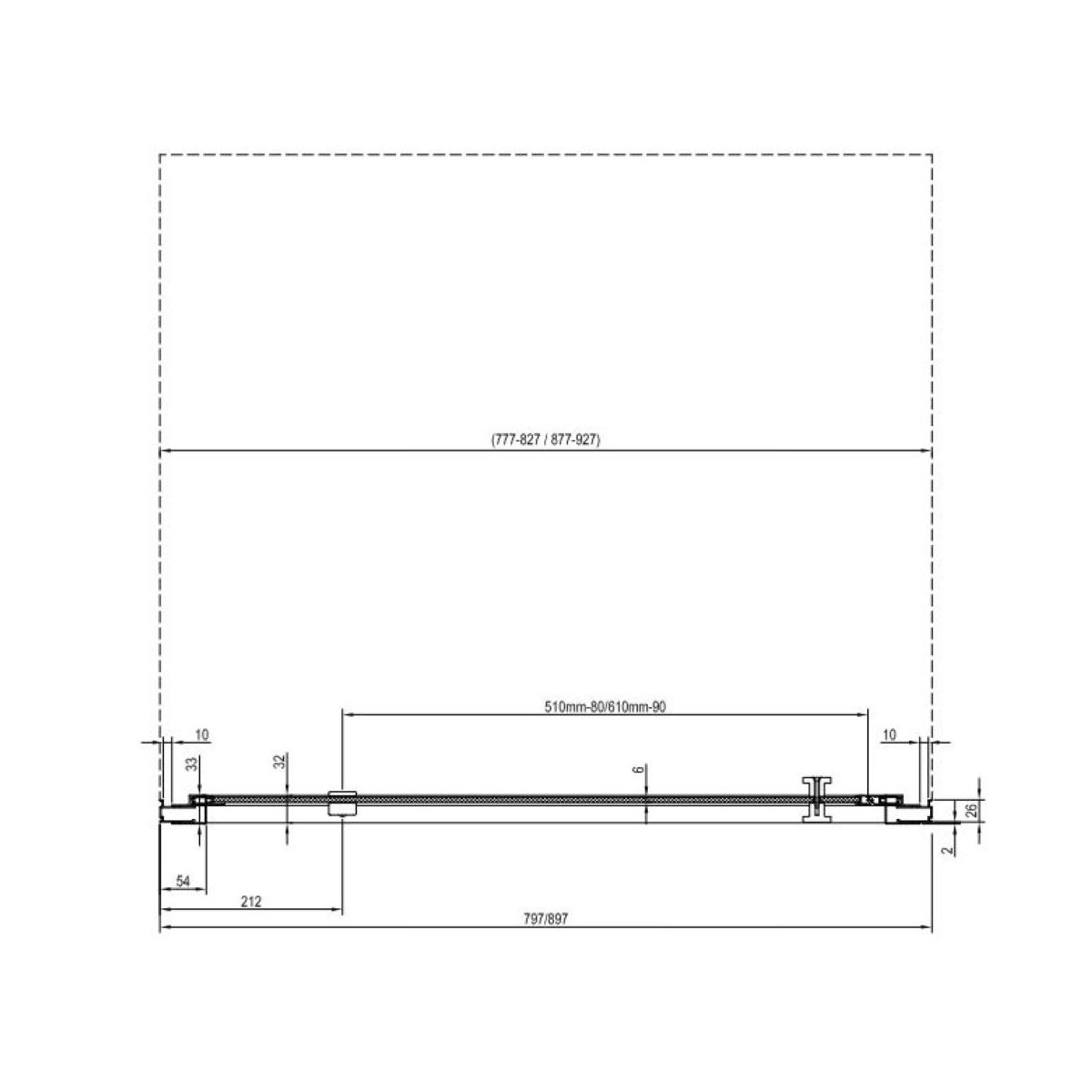 - dimensions de montage : 877-927 x 1950 mm