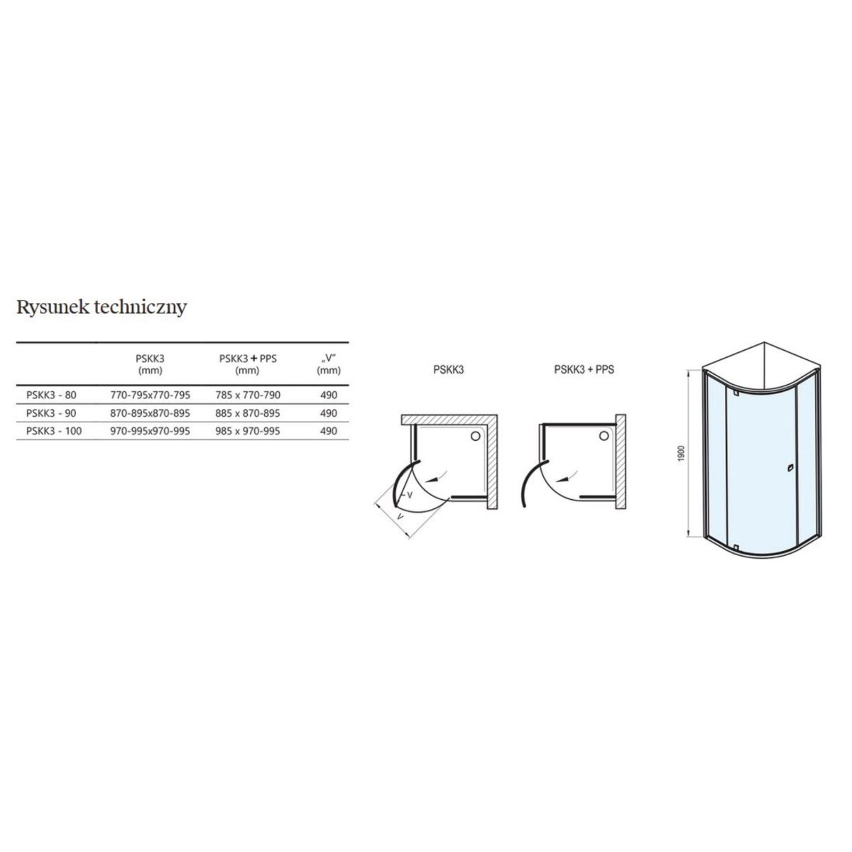 Le produit se compose de deux parties fixes et d'une partie en verre bombé formant la porte pivotante. En tournant le produit de 180° lors du montage, vous obtiendrez une variante d'ouverture de porte à gauche ou à droite. Montage dans un coin carrelé de la salle de bains sur des receveurs de douche RAVAK d'un rayon R – 500 mm ou directement sur le sol avec un siphon linéaire intégré ou une grille d'évacuation. Si vous ne disposez pas d'un coin libre dans votre salle de bains, vous pouvez compléter la cabine avec une paroi fixe PPS et l'installer contre le mur. À l'aide de profilés d'extension PNPS, le produit peut être élargi jusqu'à 4 cm de chaque côté.