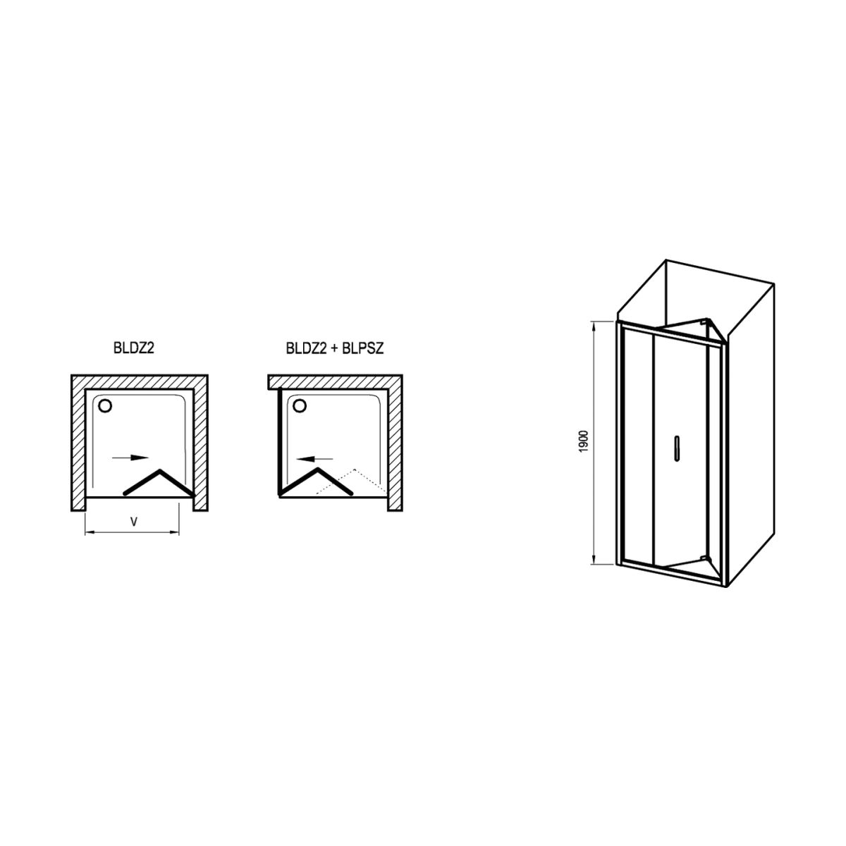 - la porte peut être combinée avec une paroi fixe pour créer une cabine de douche d'angle rectangulaire ou carrée
