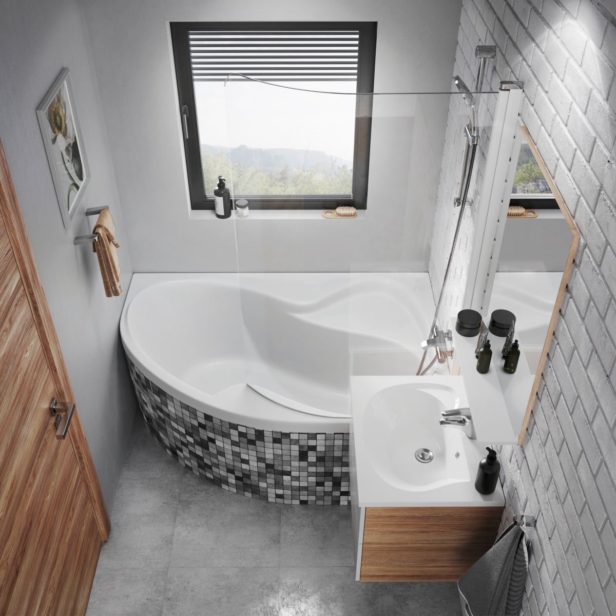 La baignoire est conçue pour être encastrée dans un panneau. Vous préférez une solution rapide et simple ? Choisissez des panneaux en acrylique. L'installation ne prend que quelques minutes et l'espace sous la baignoire reste facilement accessible.