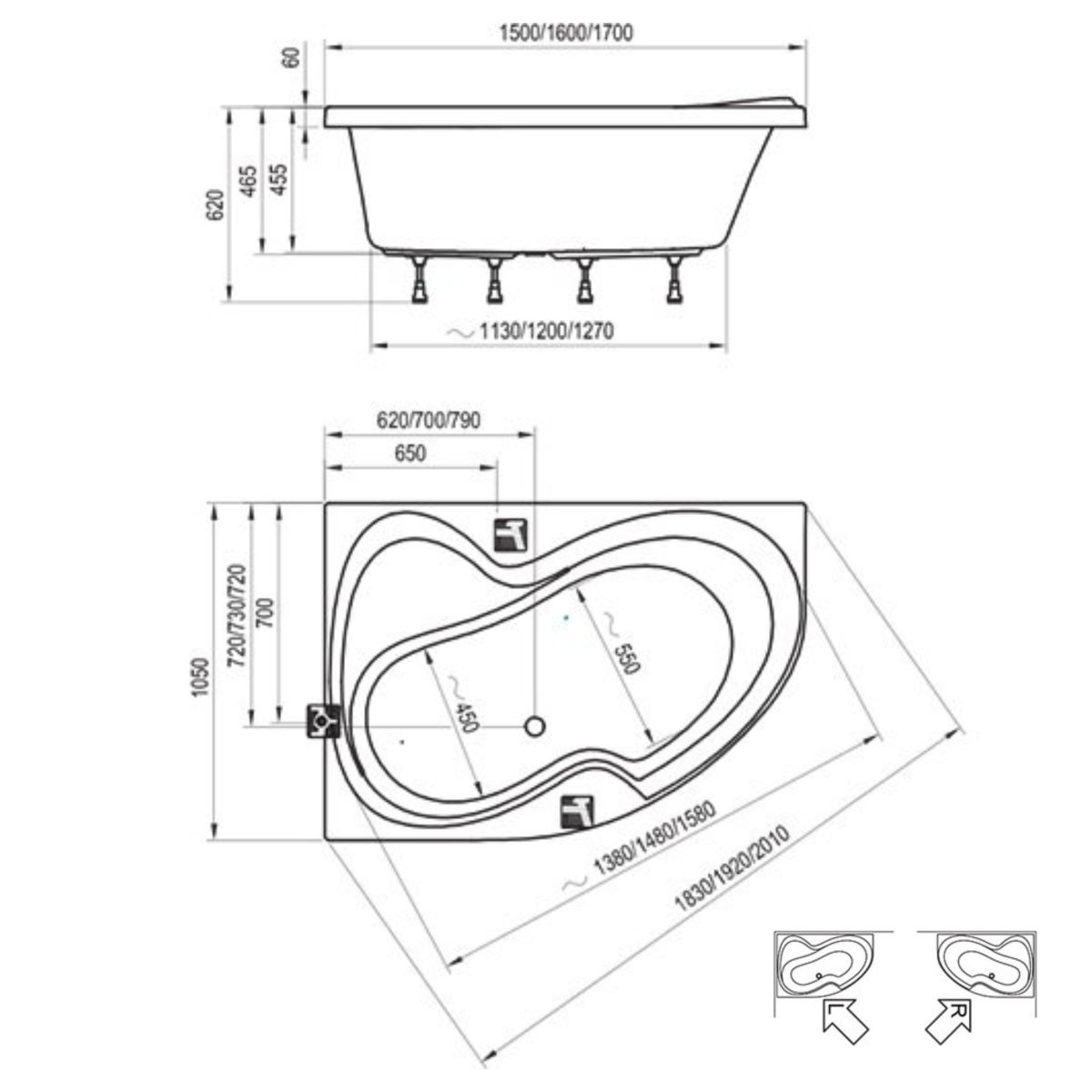 - accessoires à acheter : pied (cadre), panneau avant, kit de vidange de baignoire, mélangeur de baignoire "cascade" RS 025