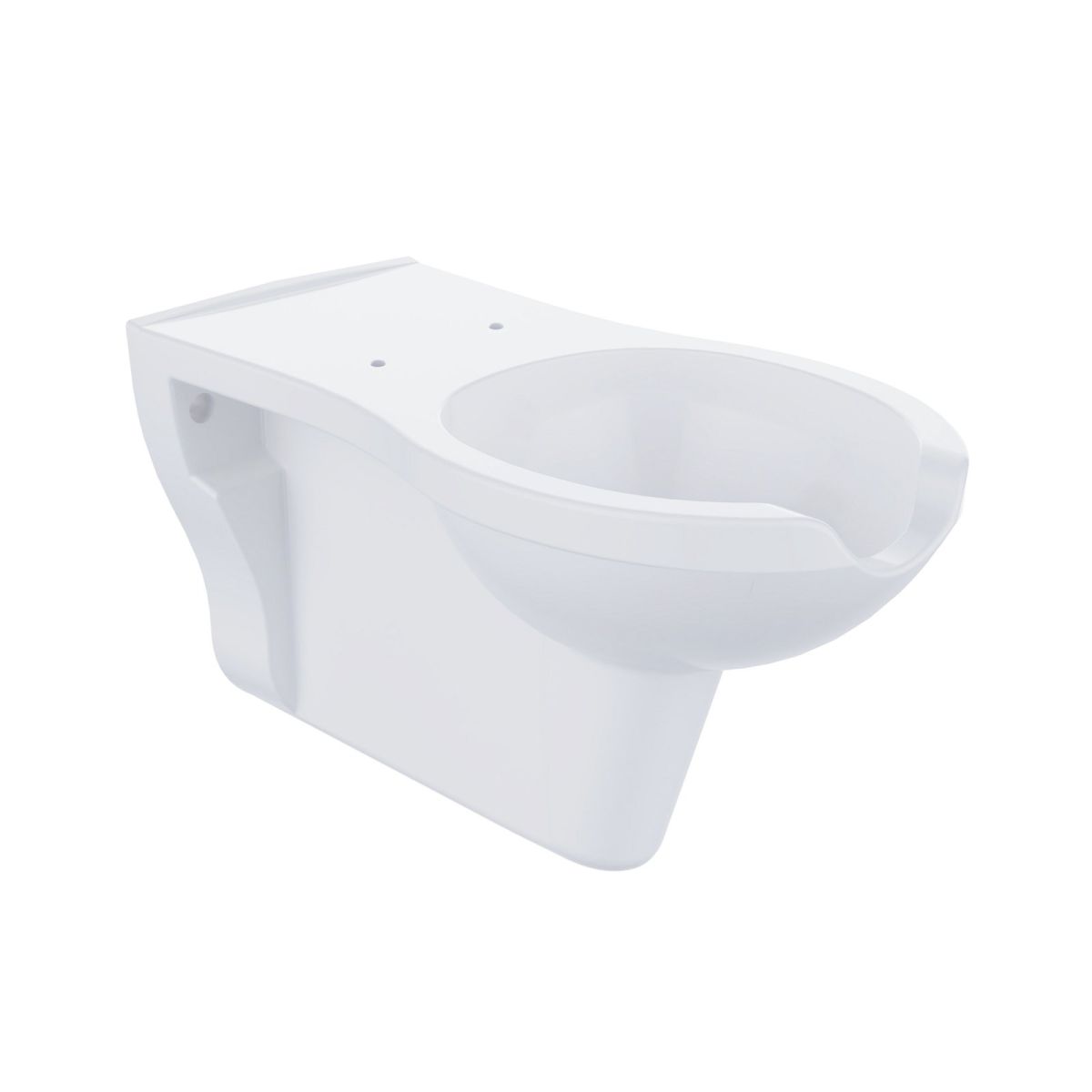 Cuvette de WC avec siège doté d'une découpe à l'avant. Cette découpe facilite le maintien de l'hygiène et apporte un plus grand confort, notamment pour les personnes à mobilité réduite ou ayant des difficultés à se pencher. La conception sans robinet permet de tirer la chasse d'eau sur toute la surface. La cuvette est conçue pour être accrochée au mur.