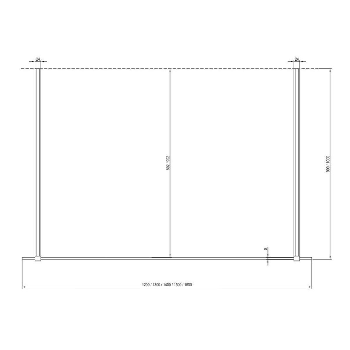 Le kit comprend une paroi en verre fixe. Le kit comprend les fixations et les supports métalliques en finition blanche mate. Les supports ont une longueur universelle de 120 cm et peuvent être raccourcis si nécessaire pour obtenir la largeur souhaitée de l'entrée. Les supports sont terminés au mur par un capuchon qui couvre la coupe.