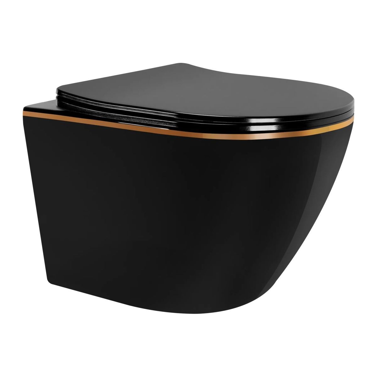 Rea Carlo Mini miska WC z deską wolnoopadającą wisząca bez kołnierza czarny-złoty połysk REA-C8800