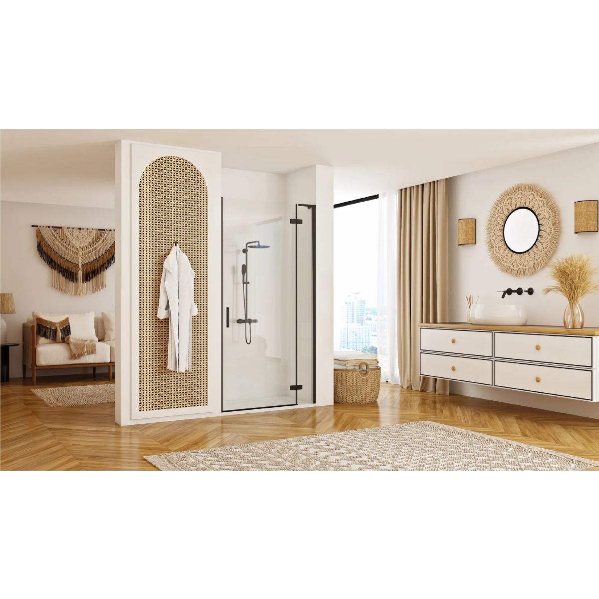 Rea Hugo drzwi prysznicowe 80 cm uchylne czarny mat/szkło przezroczyste REA-K6603