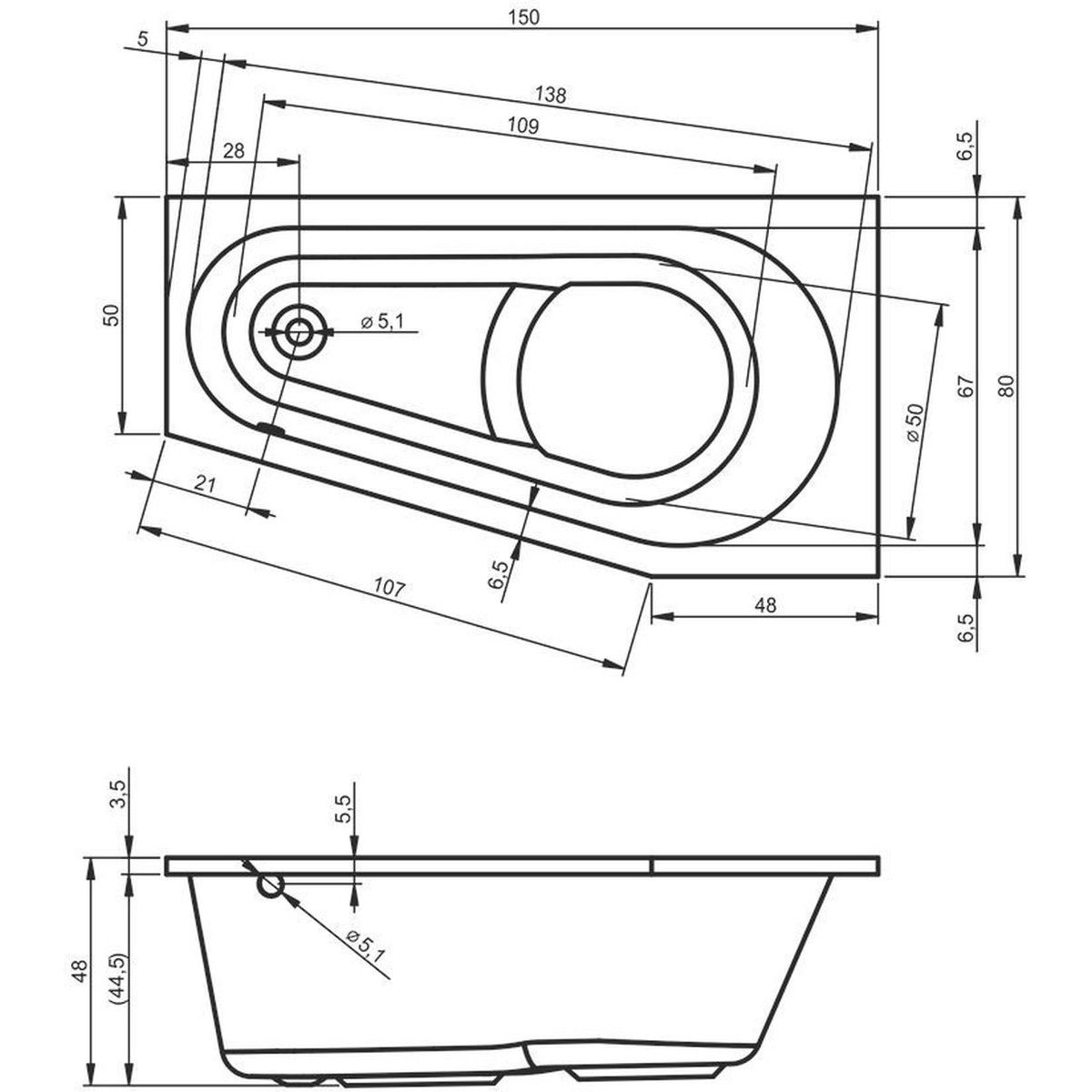 Riho Delta baignoire d’angle 150x80 cm côté gauche blanc B067001005