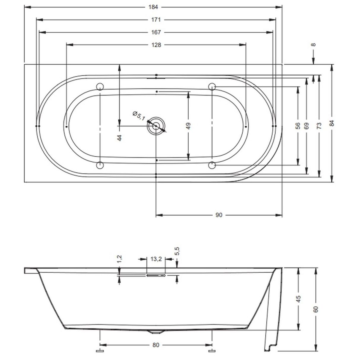Le prix concerne la baignoire en blanc mat avec trop-plein et bouchon en blanc mat.