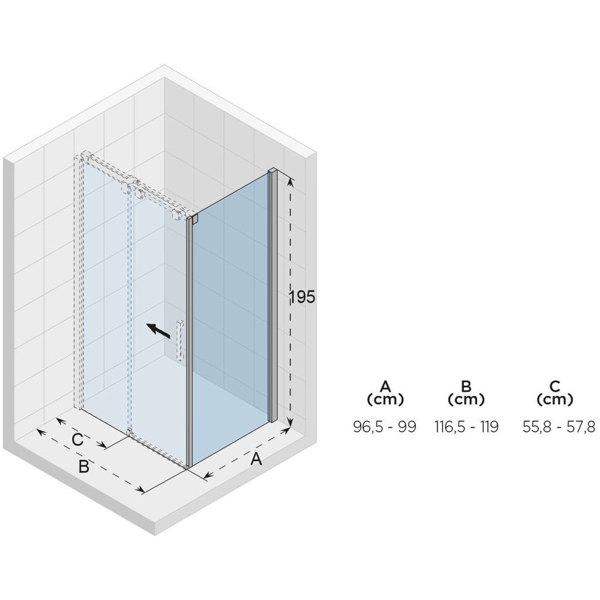 - dimensions réelles de la paroi latérale (A) : 96,5 - 99 cm