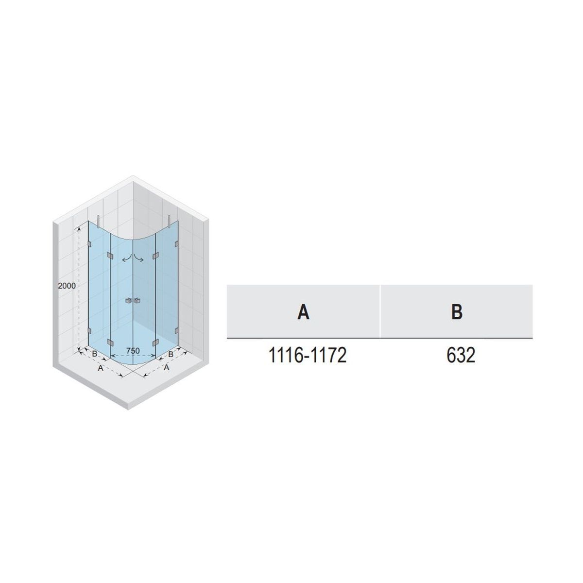 - dimensions du panneau de porte fixe (B) : 63,2 cm
