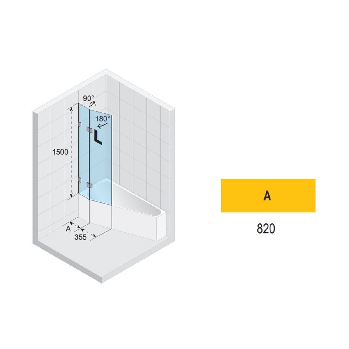 Riho Scandic paroi de baignoire 117.5 cm deux pièces noir mat/verre transparent G001163121