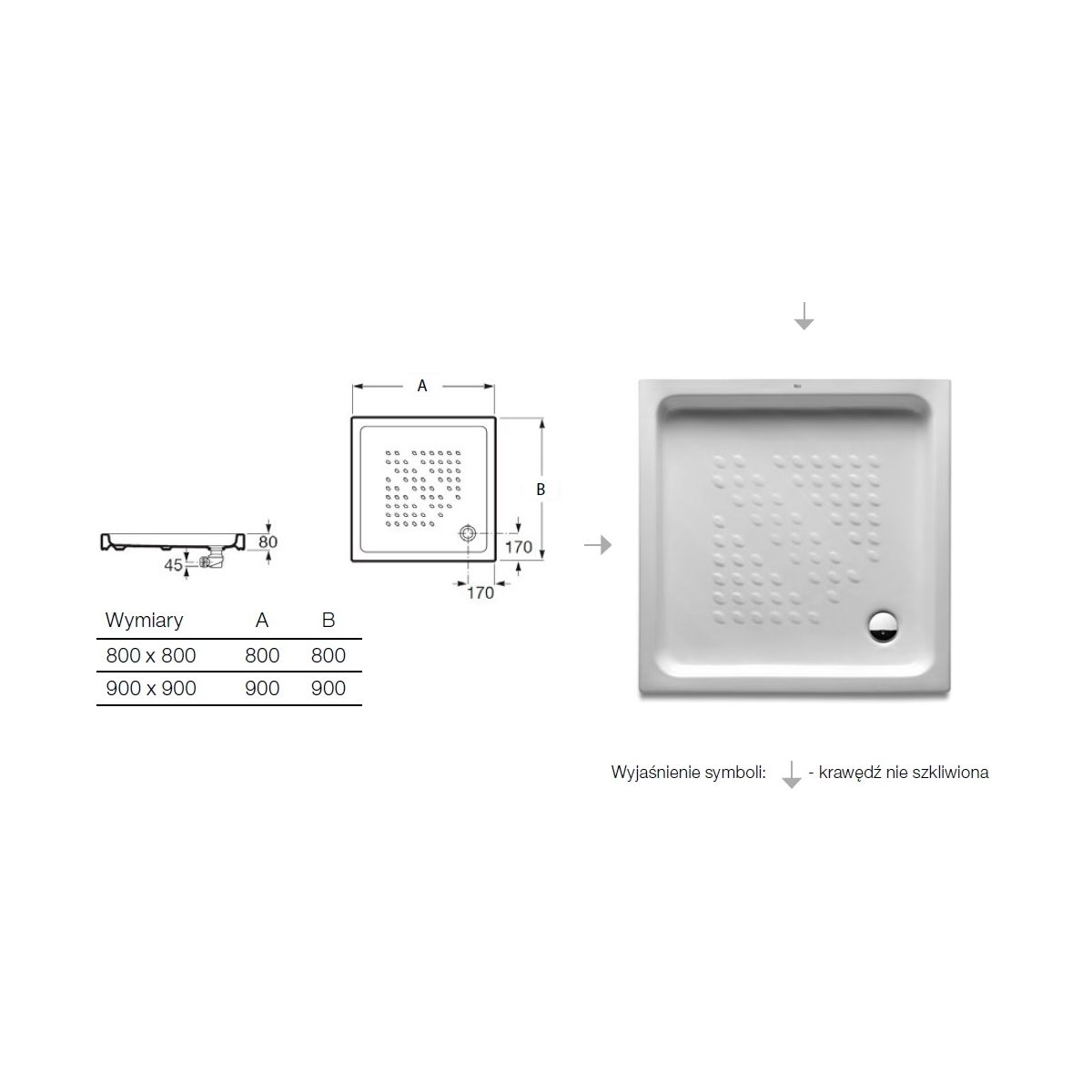 Roca Italia receveur de douche carré 90x90 cm blanc A3740HH000