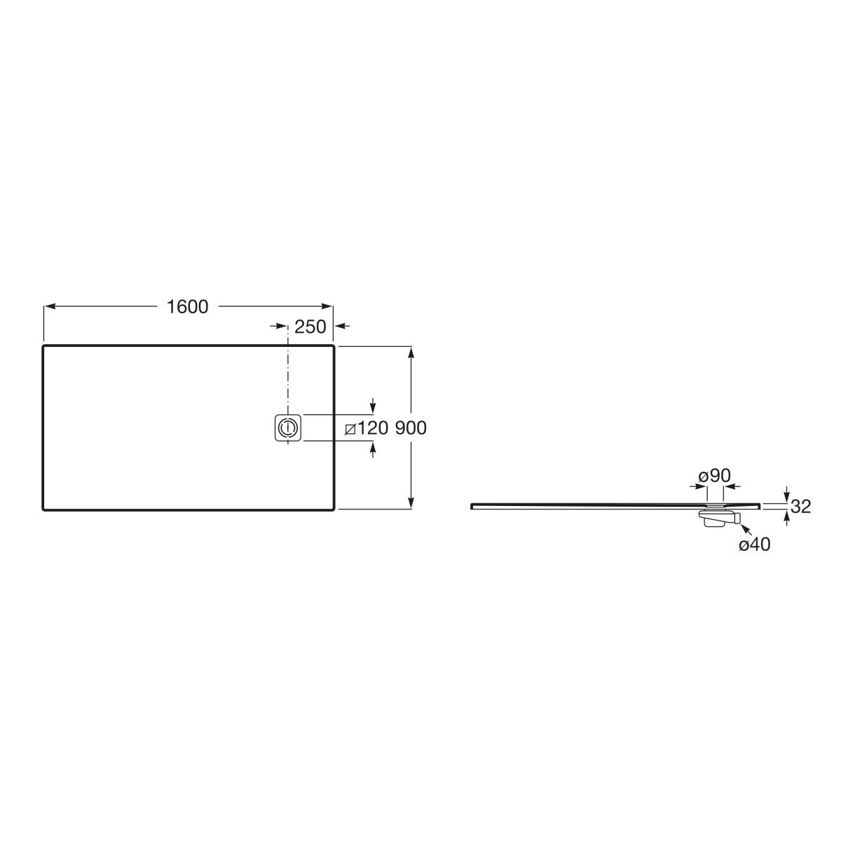 - diamètre de la bonde (mm) : 90