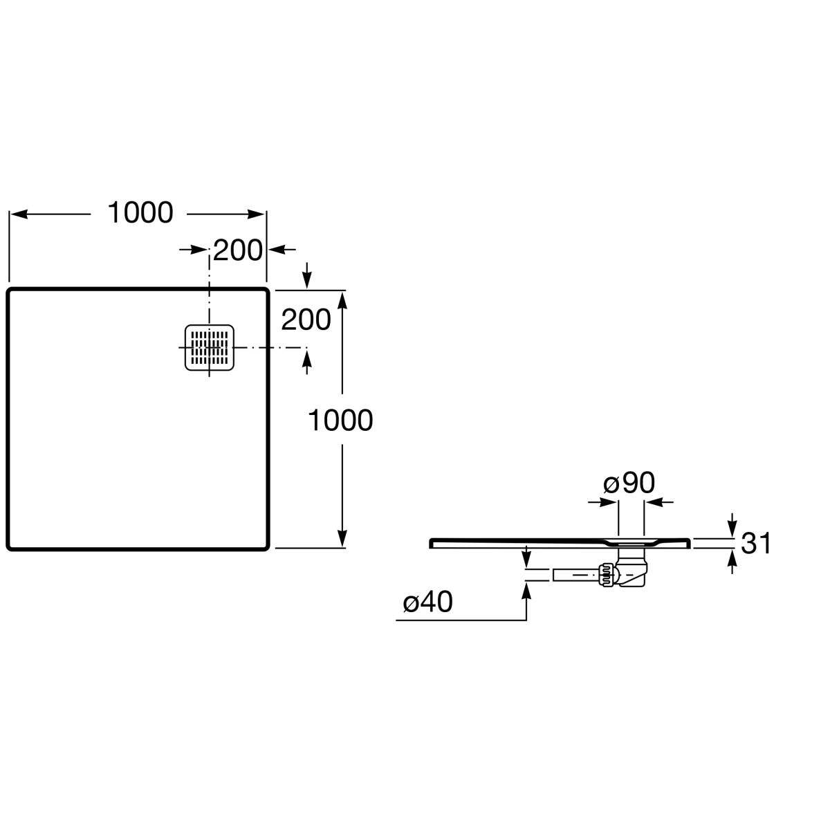 Roca Terran receveur de douche carré 100x100 cm onyx AP1033E83E801640