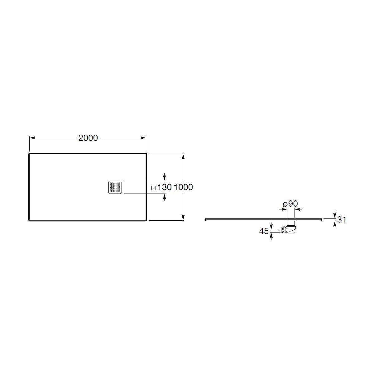 Roca Terran receveur de douche rectangulaire 200x100 cm perlé AP1017D03E801630