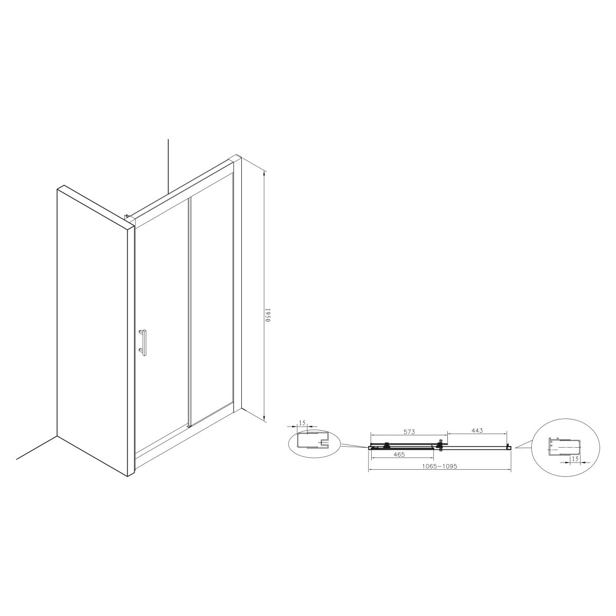 Roca Town-N porte de douche 110 cm coulissant chrome brillant/verre transparent AMP2811012M