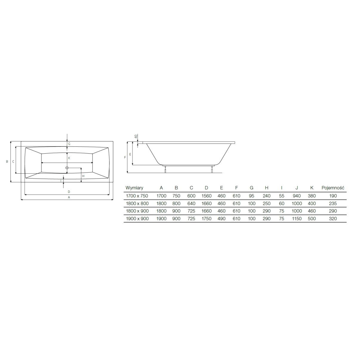 Roca Vita baignoire rectangulaire 180x90 cm blanc A24T082000
