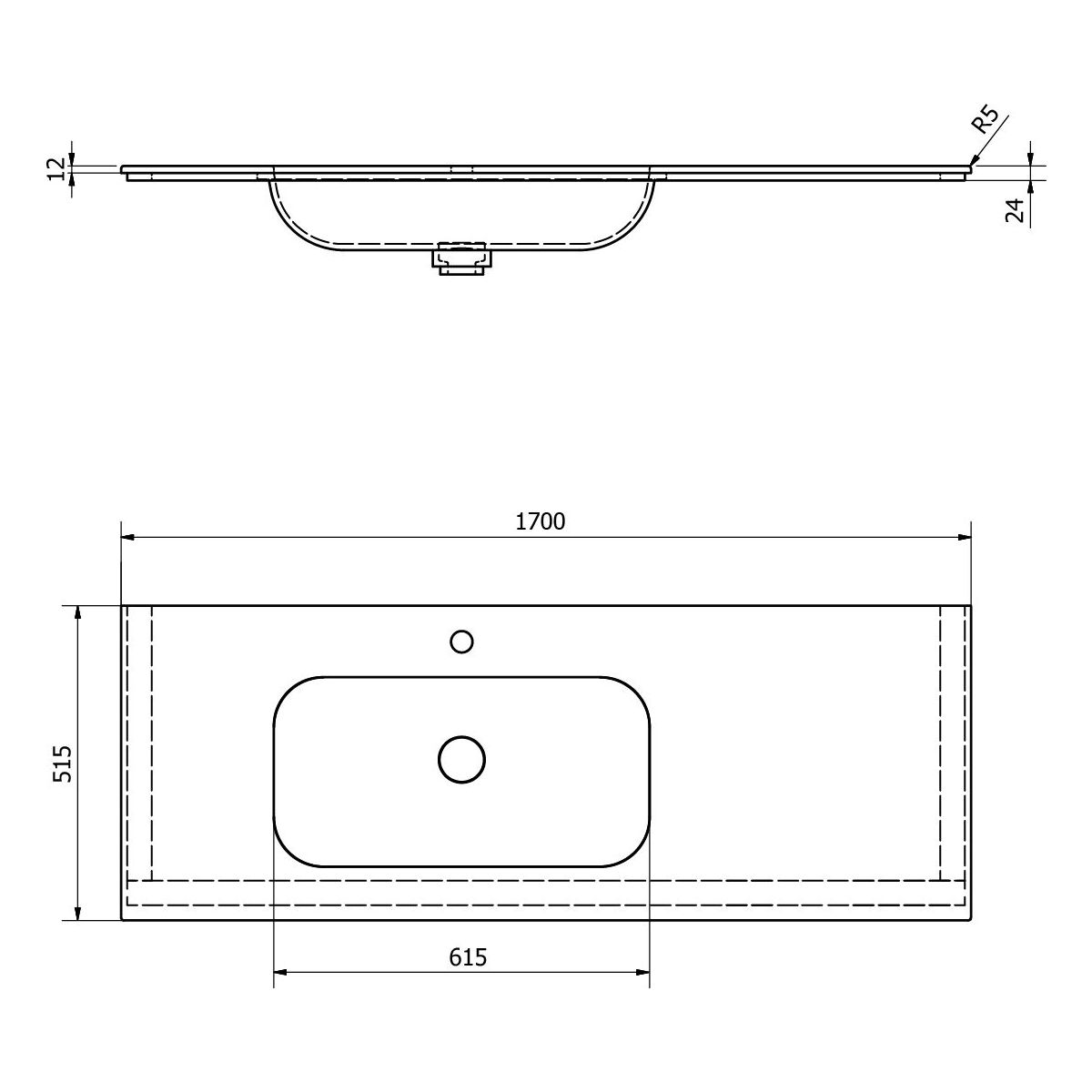 Sapho Aruba lavabo 170x51.5 cm rectangulaire de meuble blanc AR170-B1L