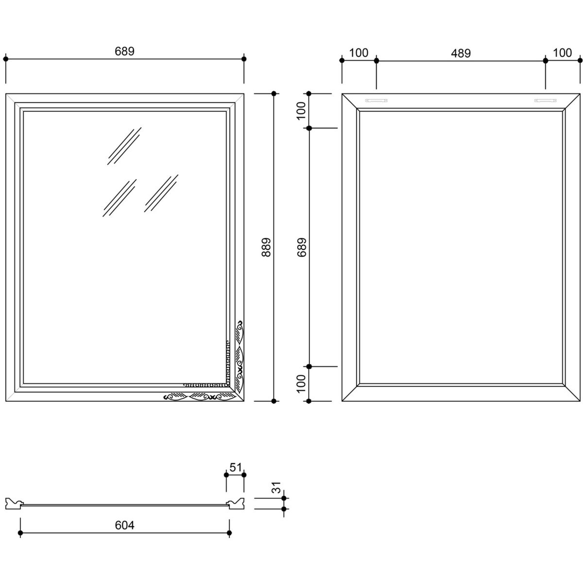 - dimensions du miroir lui-même : 60 x 80 cm