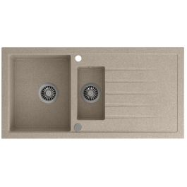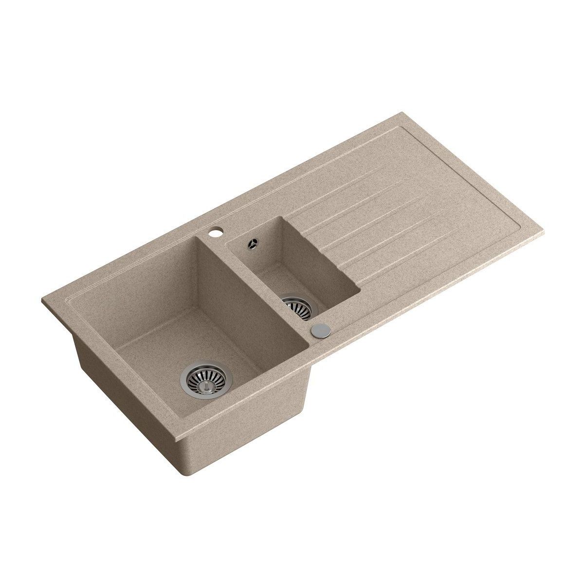 - équipement : siphon avec raccordement pour lave-linge/lave-vaisselle, gabarit pour la découpe du plan de travail