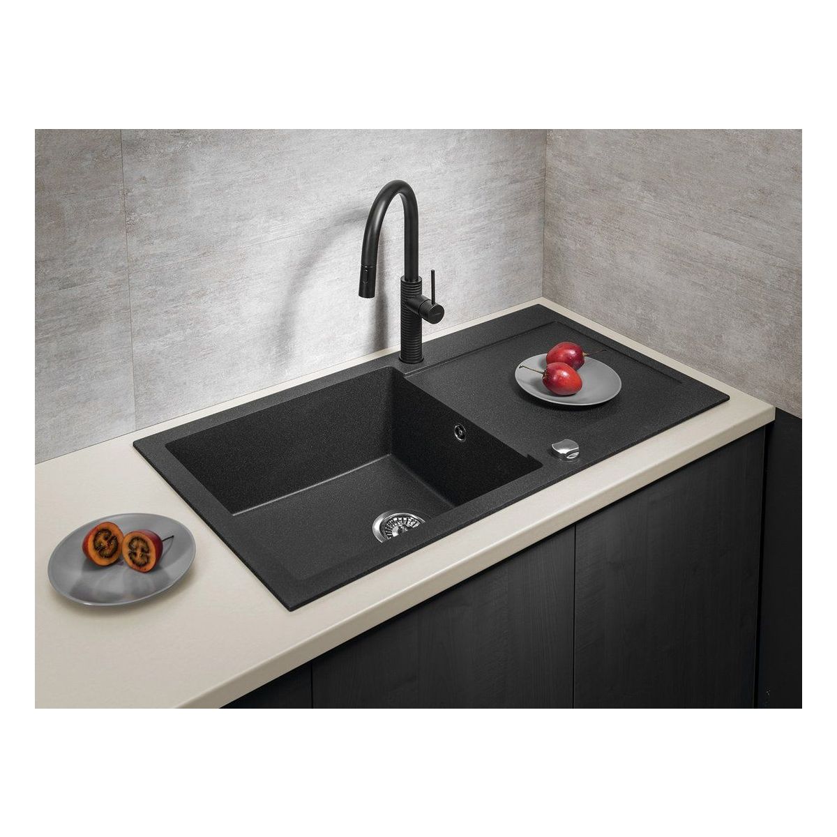 - équipement : siphon avec raccordement pour lave-linge/lave-vaisselle, gabarit pour la découpe du plan de travail