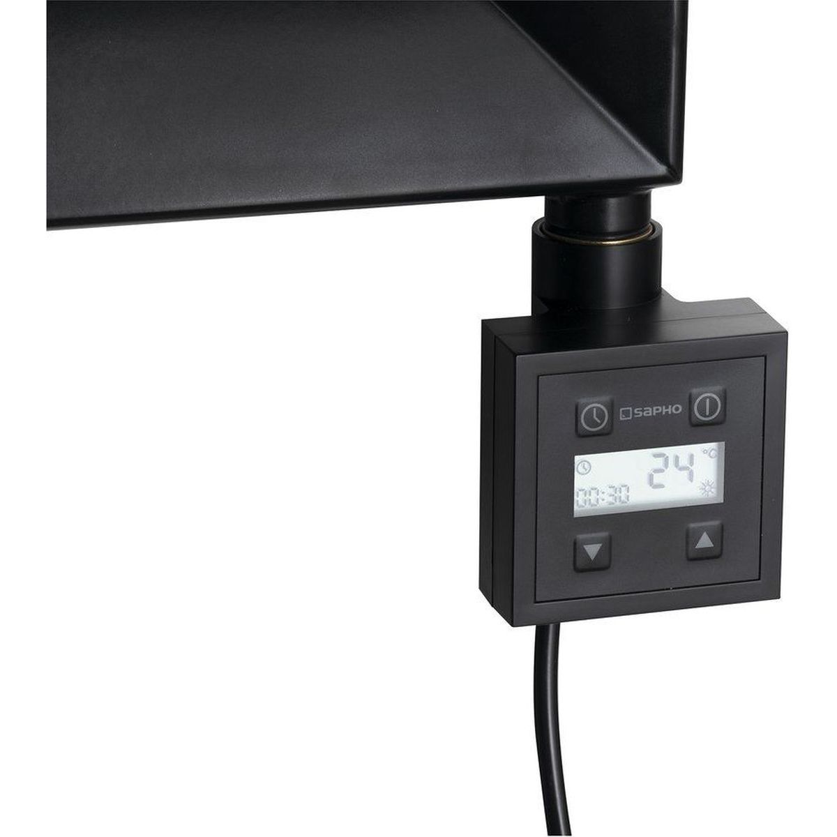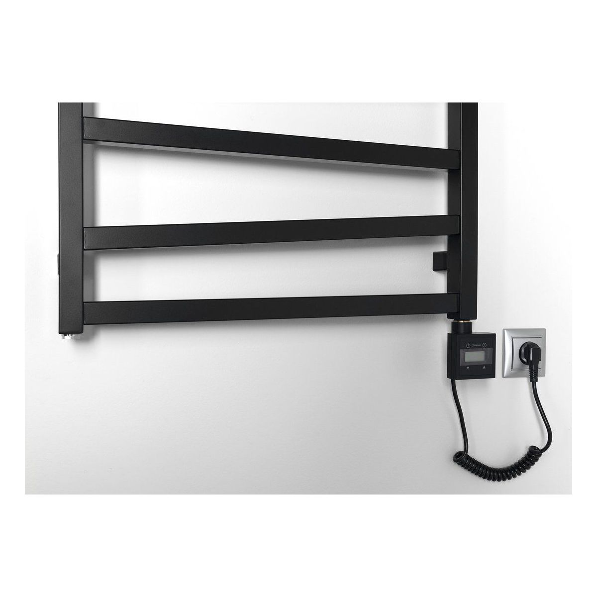 KTX BLACK - radiateur électrique avec thermostat, écran LCD et clavier à membrane. Design carré adapté à tous les types de radiateurs. Le design symétrique permet l'installation à gauche et à droite du radiateur.