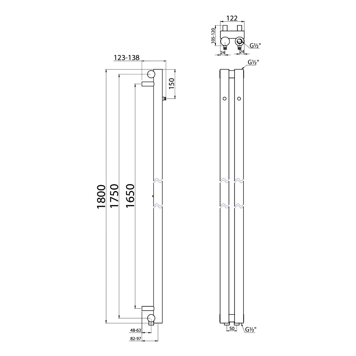 Sapho Pilon radiateur de salle de bain décoratif 180x12.2 cm blanc IZ125T