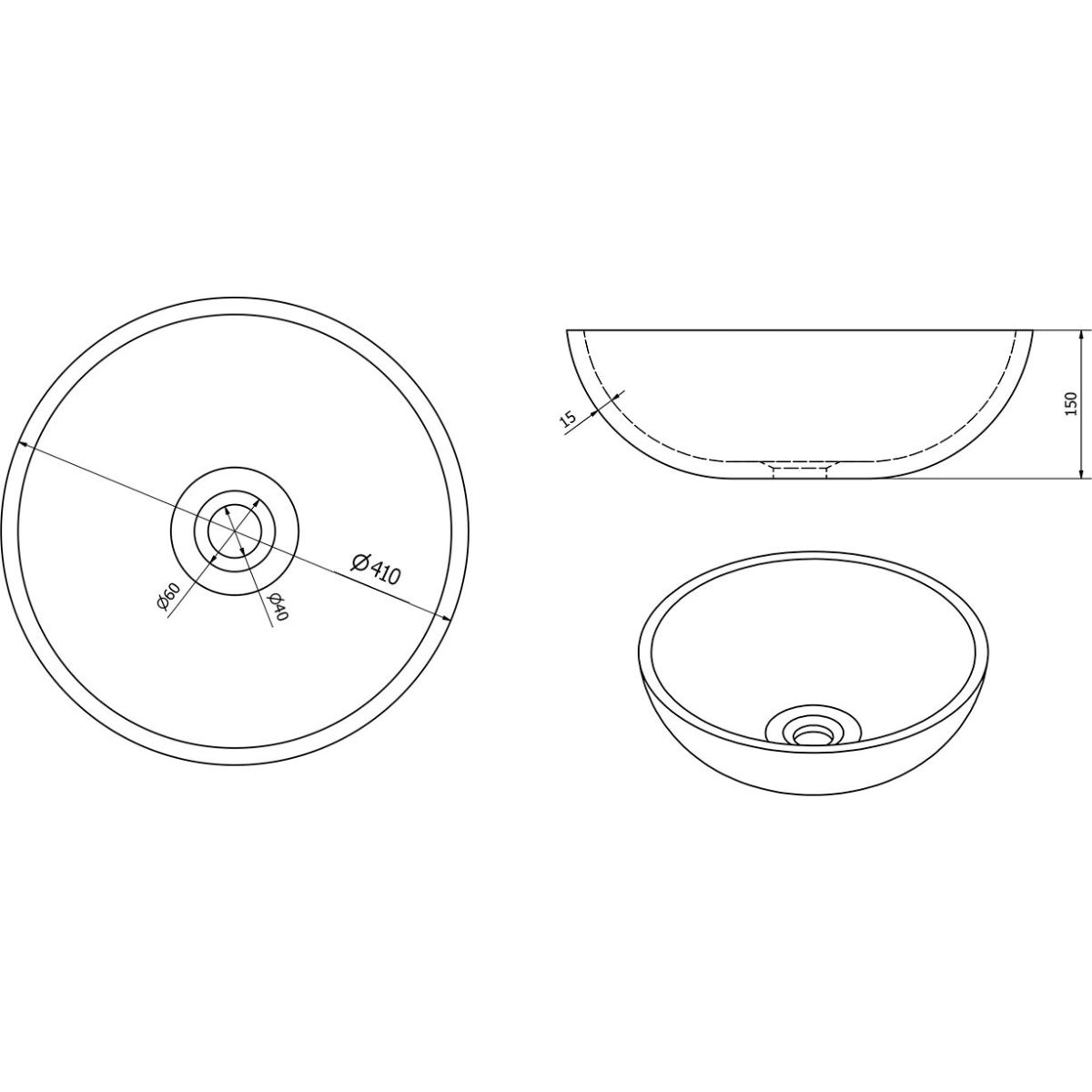 Position de la cuvette du lavabo: au milieu, universel