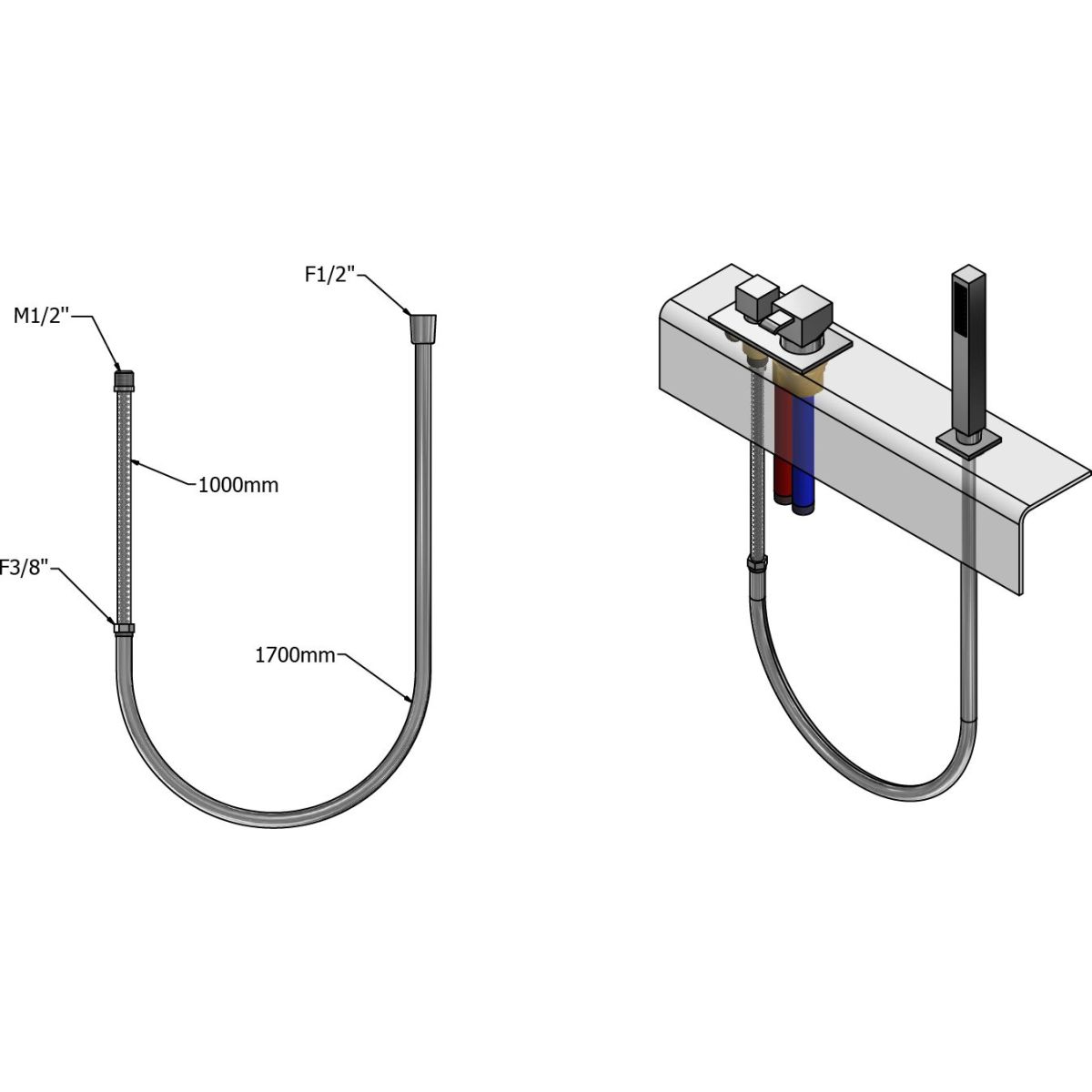 - montage : sur le mitigeur au bord de la baignoire