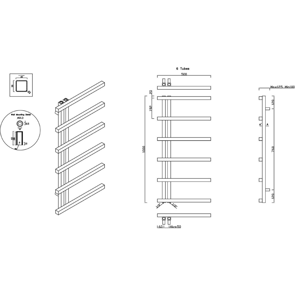 - espacement des raccords : 5 cm