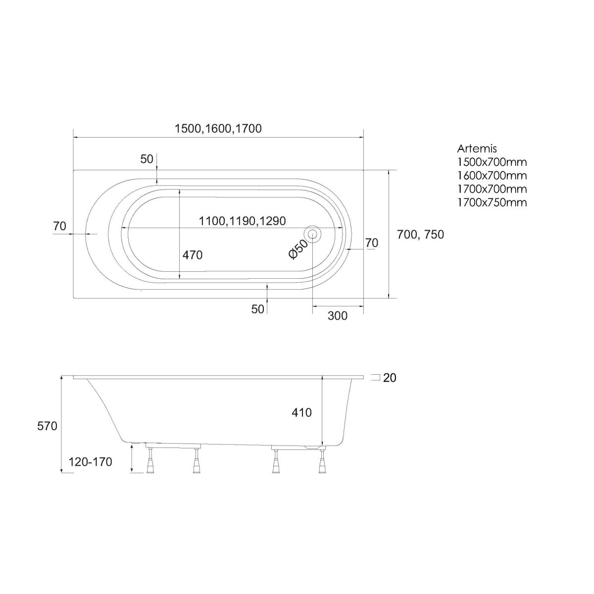 La baignoire Artemis a été conçue pour offrir un confort maximal à l'utilisateur, grâce à ses surfaces intérieures aux formes ergonomiques qui garantissent un confort optimal pendant le bain. Son rebord Slim, fin et élégant, d'une largeur de 20 mm, confère à la baignoire une impression de légèreté et un caractère moderne, s'intégrant ainsi parfaitement au style des salles de bains contemporaines.