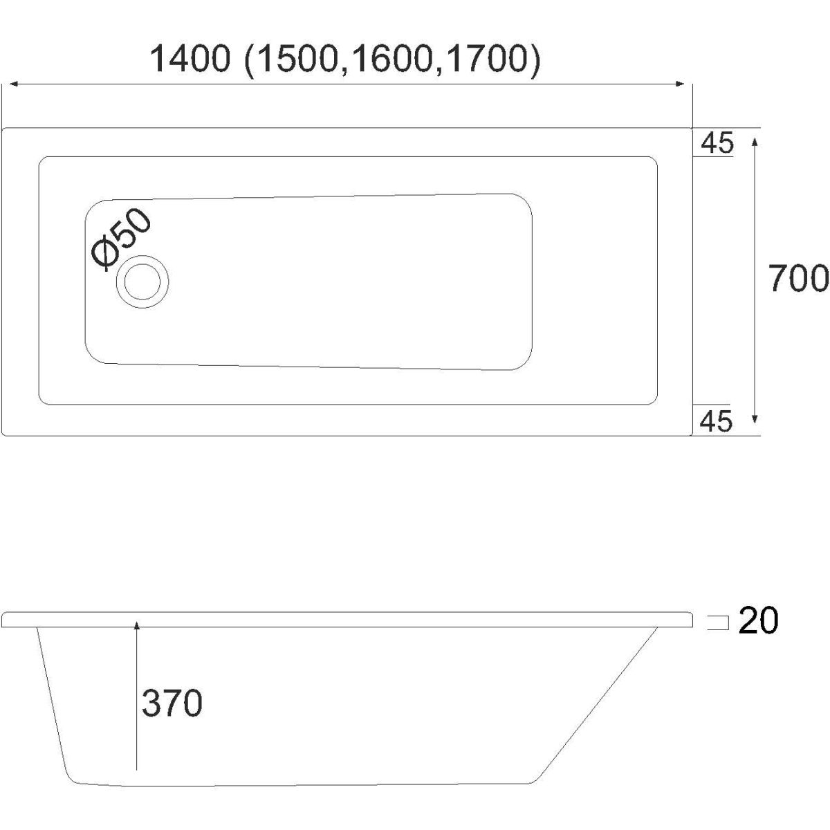 Schedline Bafia baignoire rectangulaire 150x70 cm blanc 3WST.B1P-15070