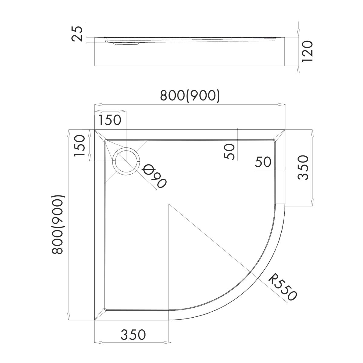 - diamètre de l'écoulement : 90 mm