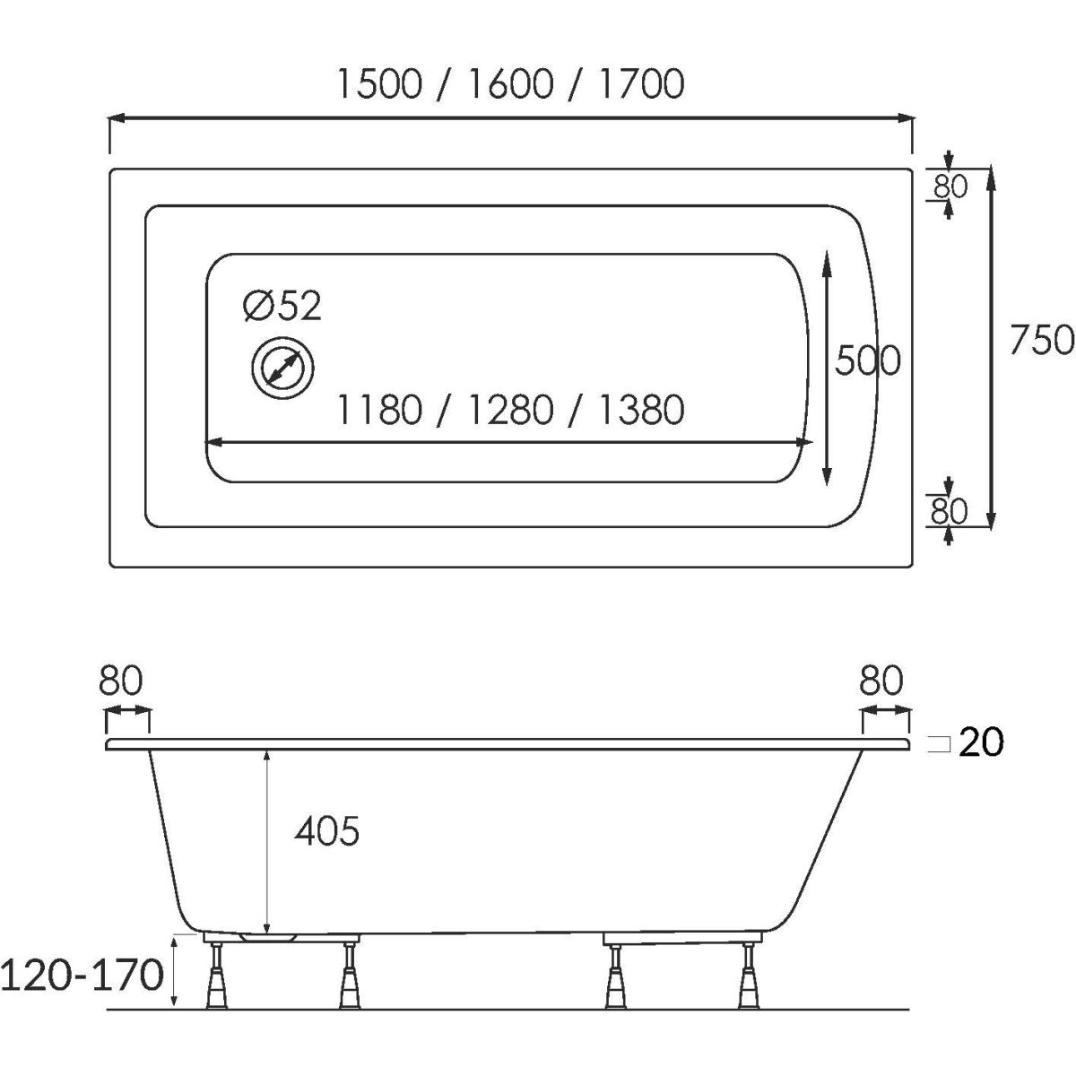 Les baignoires fabriquées avec la technologie Standard Plus ont une surface Antibac® et Easy to Clean®. Les concepteurs ont tout mis en œuvre pour que l'ergonomie et le confort du bain soient au premier plan. Les rebords Slim renforcés (20 mm) se caractérisent par des lignes douces, de sorte que la baignoire apportera une touche de fraîcheur à l'aménagement de votre salle de bains.