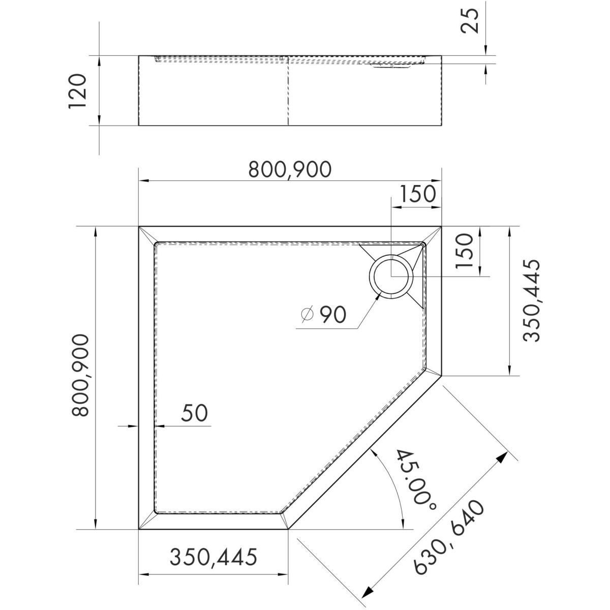 Schedpol Competia New receveur de douche pentagonal 90x90 cm blanc 1022010